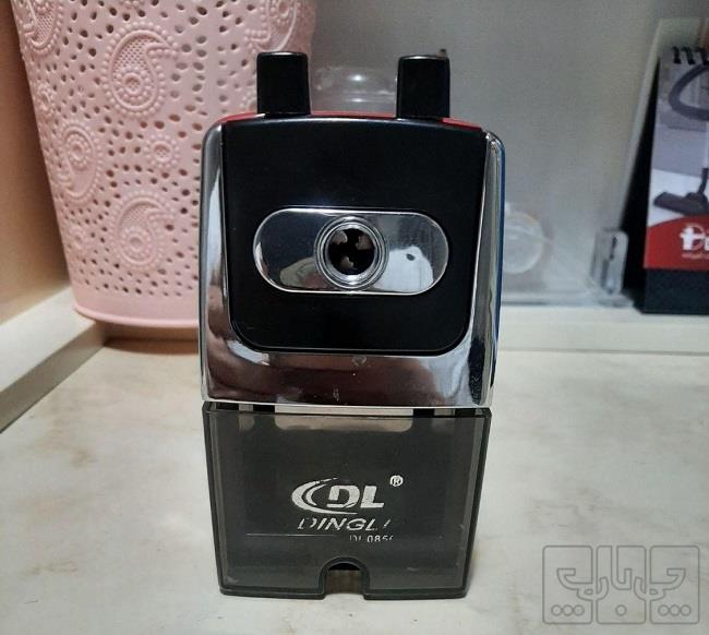 باسلام یک عدد تراش رومیزی رنگ قرمز و بدنه فلز و تیغه ی تیز و دارای اهرم