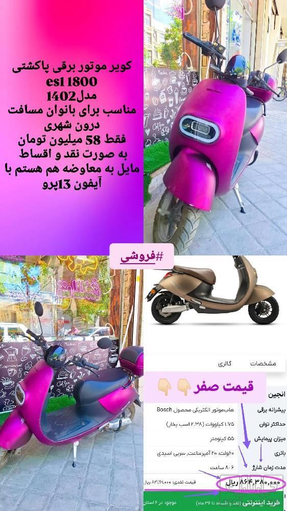 کویر موتور برقی رنگ بنفش مدل۱۴۰۲ es1 1800 کارکرد۴۰۰۰ باطری سالم