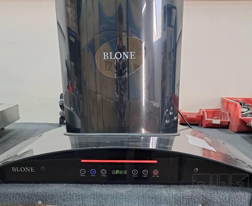 هود وارداتی بلونه، موتور حلزونی بزرگ و بسیار قوی و درعین حال کم صدا، برد ۵ دور. کاور بالا تیتانیوم، سنسور اتوماتیک بو، دود، حرارت با عملکرد دقیق و عالی، ترموگاد، نمایشگر دار. نورپردازی بسیار زیبا بالای نمایشگر که لا تغییر هر دور از موتود هود. رنگش تغببر میکنه کامل با لوازم جانبی