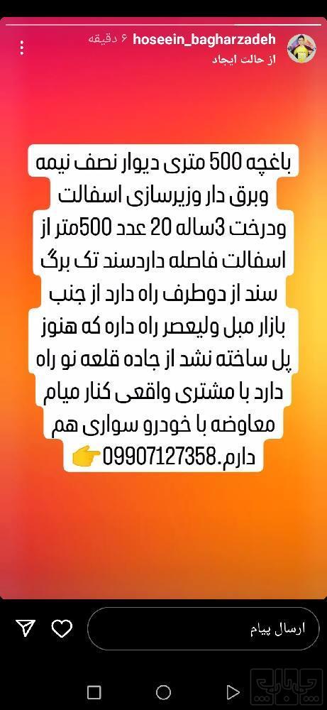 سلام باغچه 500متری برق دار برای توضیحات بیشتر تماس بگیرید