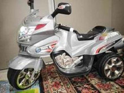 موتور شارژی نقره ایی رنگ رو به جلو_عقب_چپ_راست حرکت میکنه بدون کوچکترین ایراد و شکستگی دارای باتری قوی و کابل شارژ مناسب برای سن 3 تا 8سال