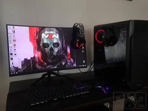 کیس گیمینگ با مانیتور و موس و کیبرد و پد موس