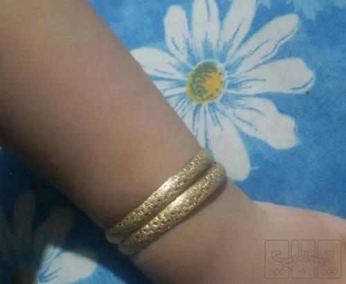 دوتا النگوی طلای بچگانه در حد نو چهار گرم و هشتصد و بیست سوت از دو ساله تا پنچ ساله میخوره