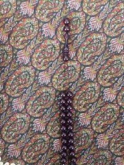 باسلام یک عدد تسبیح سندلوس دوپوست آبی،شیخک دوسوراخ،تراش گرد،بافت نخورده،33تایی.به شرط کارشناس