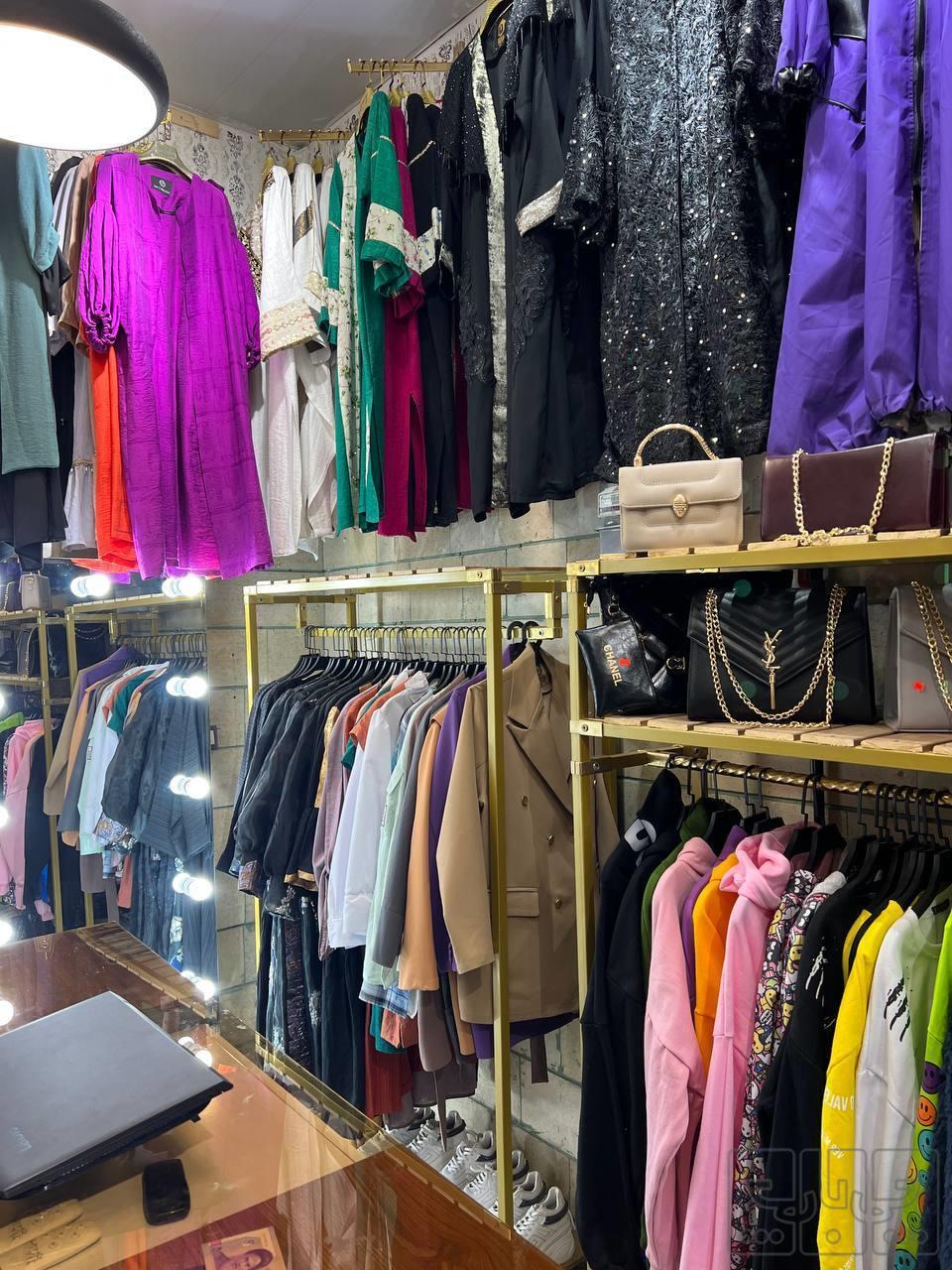اجناس شامل لباس زنانه شال روسری کیف و کفش شلوار لی سایزبندی کامل مانتوپالتوهودی و..ودکوراسیون مغازه تمام ام دی اف وسالم رگال ایستاده و دیواری پیشخوان مانکن ویترین و...