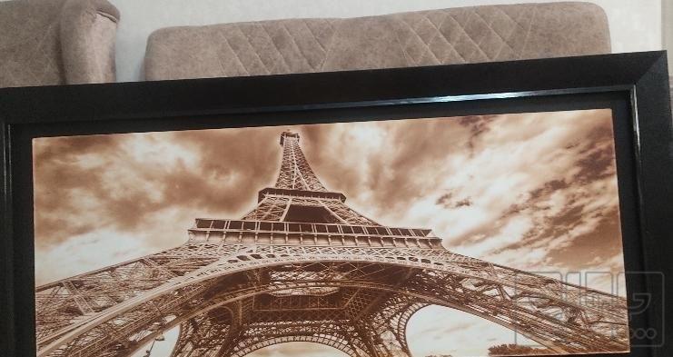 تابلو دیواری در ابعاد ۷۰ در ۱۴۰ محکم قاب زیبا و قهوه ای سوخته طرح زیبای برج ایفل