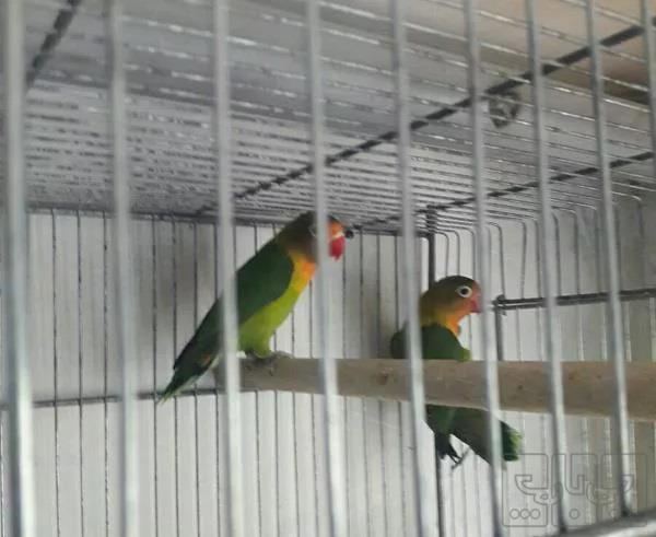یک جفت آبی فیروزه ای جوان یکساله درحال لانه گرم کردن بازی گوش جفتی ۱/۵۰۰ یک جفتم فیشر سبز یقه زرد جفتی ۱/۲۰۰ جوجه پارسال هستن ...جنسیتشون نامشخصه.