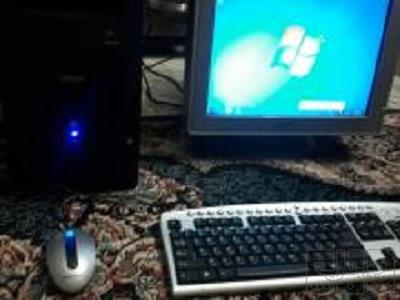 باسلام سی پی یو cor2duo قدرتمند هارد 120 ساتا رم2گیگ ddr2 دی وی دی رایتر مانیتور سامسونگ 17 کیس گرین موس فراسو کیبورد ویندوز یک هفتست عوض شده
