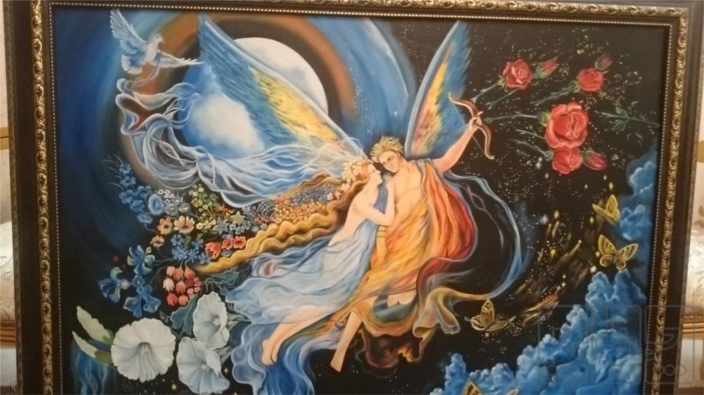 تابلوی مینیاتور رنگ روغن سایز بزرگ هنر دست همراه با قاب