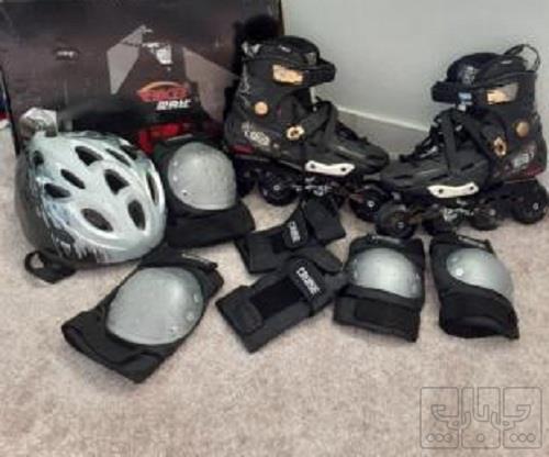 اسکیت قرمز:روسز(مدل اورلاندو)اصلی باتمام لوازم سایز36 تا40 اسکیت مشکی:بی کی بی اورجینال سایز42 باتمام لوازم