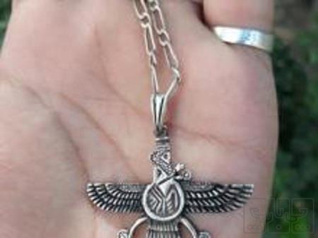 زنجیر و پلاک نقره دستساز فروهر با مهر طول زنجیر در حالت بسته 31 سانت هست