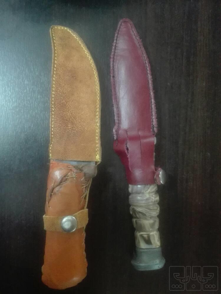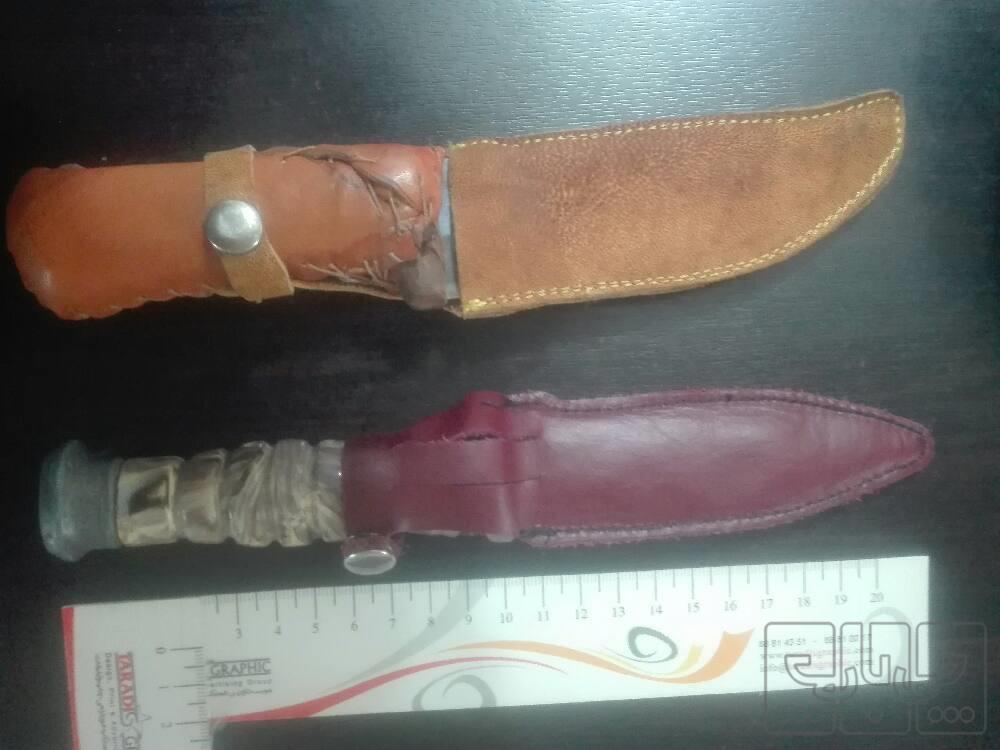 دو عدد چاقوی شکاری یکیش المانی یکیش زنجان با غلاف چرم