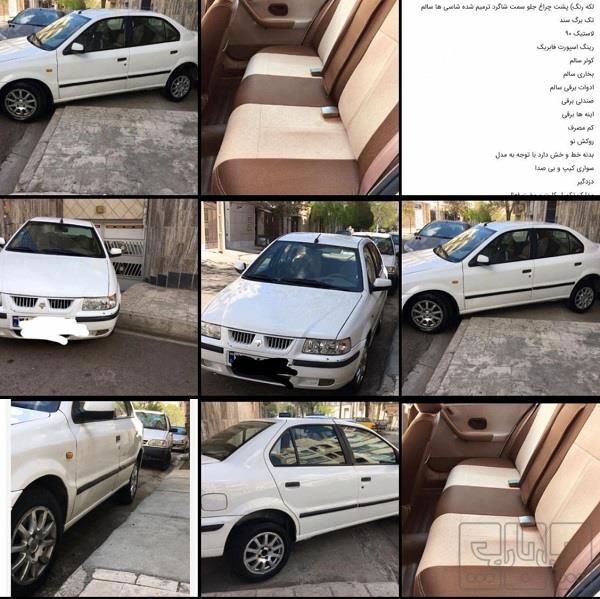 سلام و ارادت صندلی برقی سالم اینه برقی سالم روکش نو سخنگو سالم کولر یخچال بخاری سالم بدون روغن سوزی و روغن ریزی مدارک تکمیل تک برگ سند سه قطعه رنگ:گلگیر جلو سمت شاگرد، کاپوت، گلگیر عقب سمت راننده (پشت چراغ جلو تر سمت راننده ترمیم دارد، شاسی ها پلمپ جلو عقب)