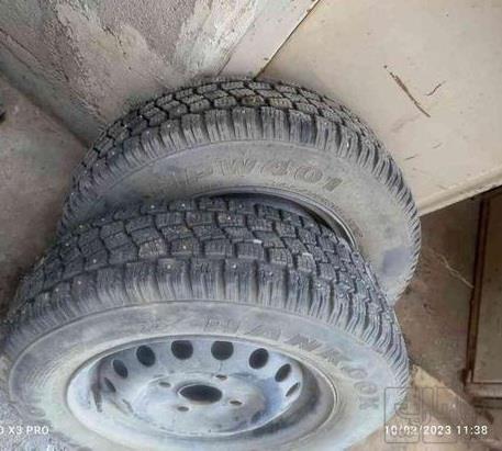 یک جفت لاستیک یخ شکن درحد وکم کارکردخارجی مارک هانکوک همراه بارینگ سالم وبدون عیب