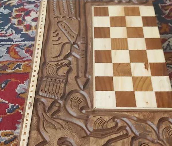 منبت کاری شده چوب گردو دارای مهره شطرنج کلکسیونی مهره بازی دومم داره معاوضه هم دارم