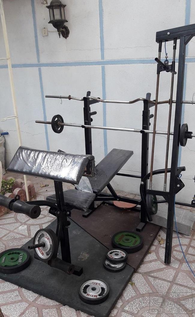 باسلام دستگاه بدنسازی 54کاره و 50کیلو وزنه و میله لاری و میله حرفه ای پرس