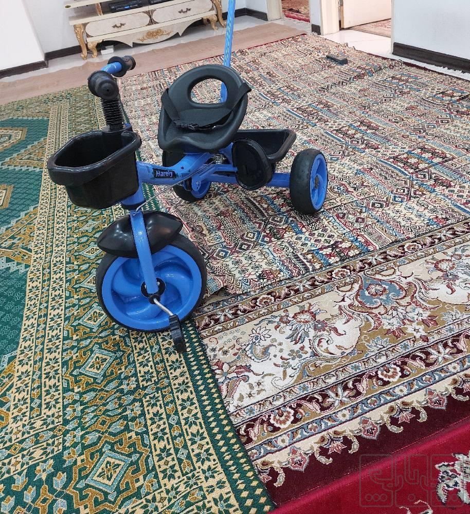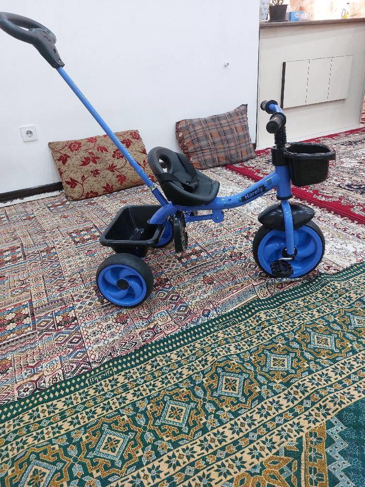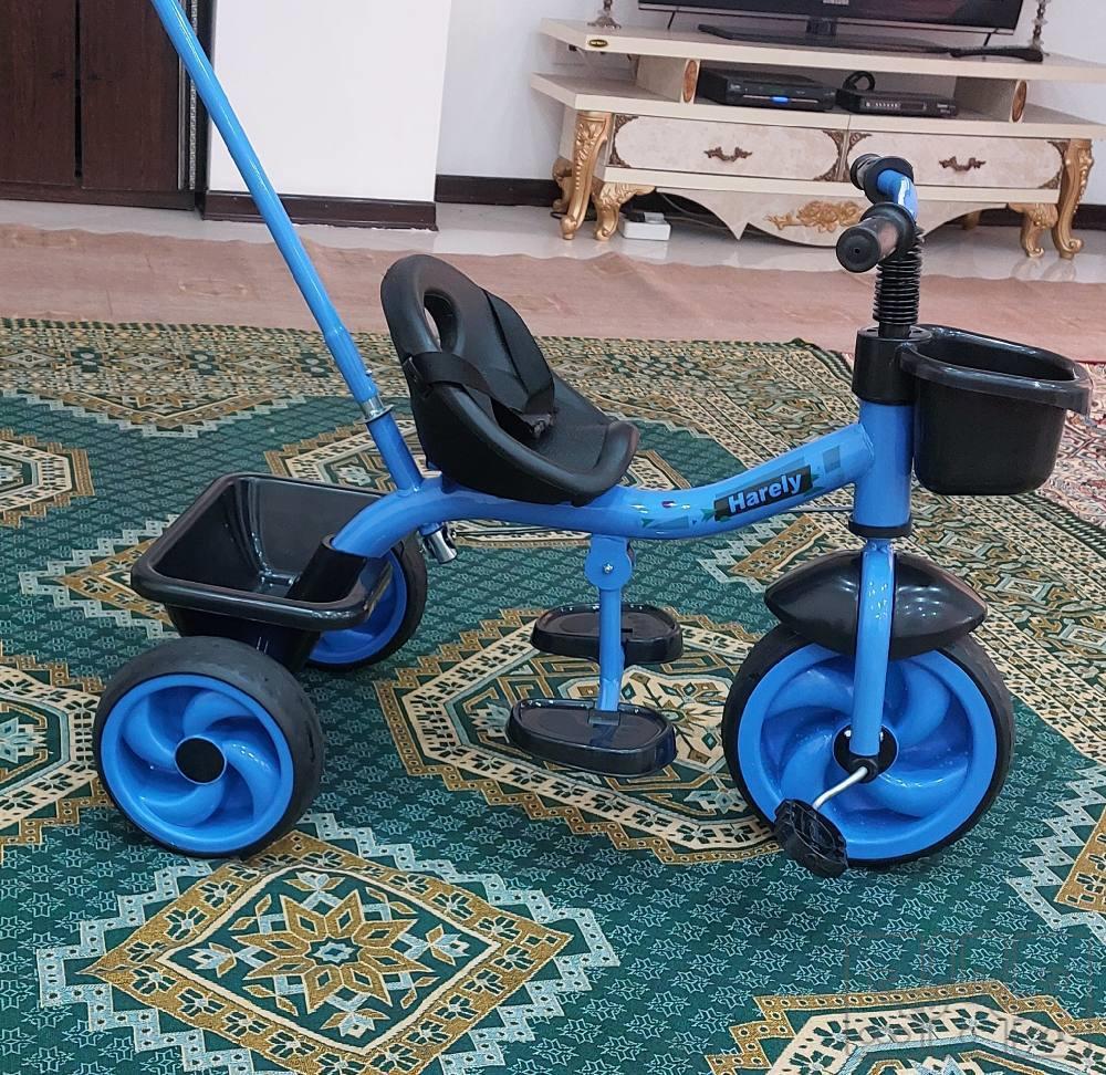 با سلام خدمت دوستان عزیز یک عدد سه دوچرخه کودک مدل هارلی بدنه آهنی بسیار سبک و محکم رنگ آبی دارای دسته فرمان هدایت والدین