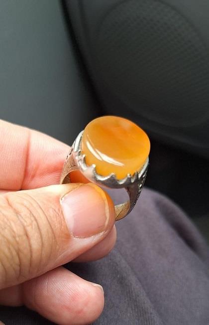انگشتر رکاب نقره نگین عقیق زرد قیمت ۱۳۰۰