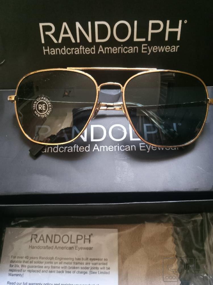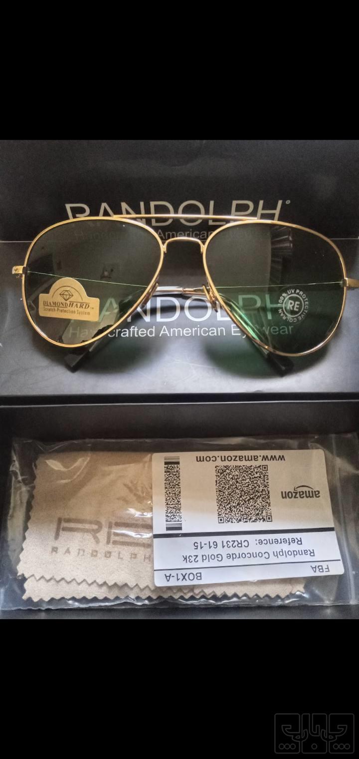 تعداد چهار عدد عینک آفتابی رندولف اصل آمریکا با فریم طلای ۲۴ عیار و دارای شناسنامه اصالت و کد رهگیری دار که روی تمامی عینک ها حک شده که همون کد هم روی جعبه ها و هم روی بدنه عینک ها و همچنین در شناسنامه درج شده که با یک اسکن ساده بوسیله گوشی تلفن همراه میشه براحتی از سایت سازنده عینکRandolphusa استعلام اصالت گرفت