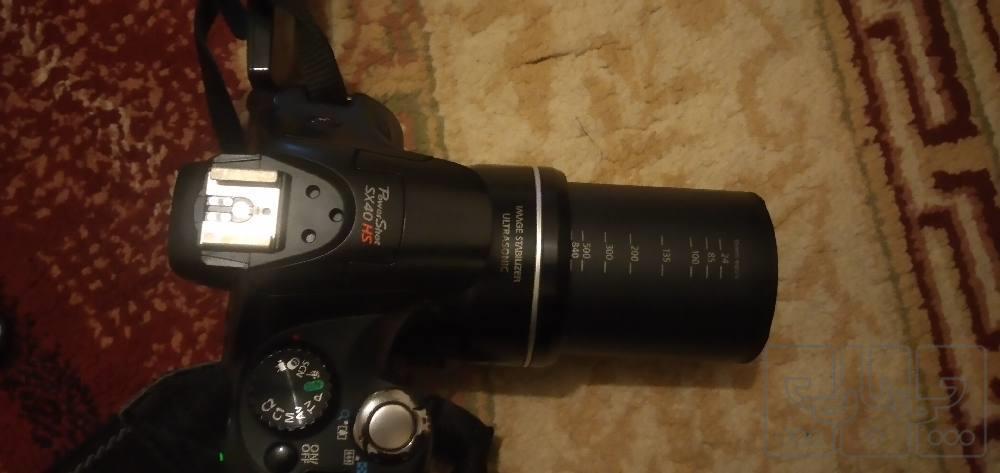 یک عد دوربین سوپر زوم کانن مدلcanon powershot sx40hs که برای پروژه های مدرسه استفاده شده برای شروع عکاسی بسیار مناسب است تمیز داری یک کیف و شارژر و سه پایه و کابلusbمخصوص از نقاط مثبت این دوربین زوم بسیار زیاد و بدون افت کیفیت و کوچک بودن و کار آمد بودن و این دوربین شبهslrاست
