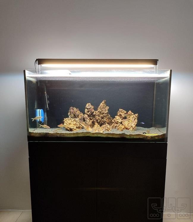 سلام اکواریوم سوپر کیلیر ریملس در ابعاد طول 90-عرض45-ارتفاع45 مناسب پلنت ، آب شیرین ،اب شور پایه کامل MDF شامل لوازم فیلتر سطلی آتمن با تمام وسایل پد سرامیک غیره، کاملا سالم دوطبقه چرخش آب بالا لوازم سالم بخاری +چربی گیر روی آب+درجه جیوه ای مهتابی دولاین + شیشه پاکن تیغ دار مه ساز روی آب + پمپ هوا وسنگ هوا دو عدد توری+ دو عدد سیفون بیست و پنج کیلی شن مشکل سیلیس پانزده کیلو سنگ دراگون هشت عدد ردلاین دو عدد لجن خوار+غذا ماهی