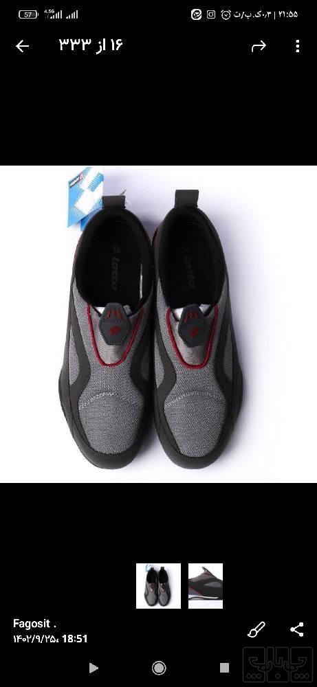 رنگ مشکی کتونی ورزشی حرفه ای نونو هست با جعبه سایز 42 ایران برند ایتالیایی لوتوو بسیار سبک و راحت لایه جیر سه لایه تنفسی شیک و پاخور عالی