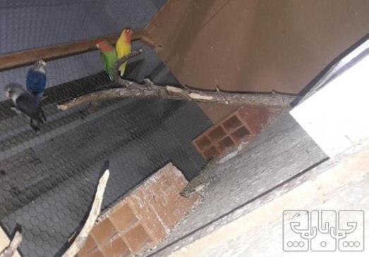 جفت طوطی برزیلی بالغ تازه جفت انداختم ماده مشکی نر ابی هر دو تو لک ماده صاف کرد نر تازه رفته تو لک