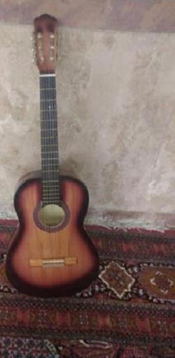 گیتار نو رنگ قهوی،رنگش را دوست ندارم، تار هاش سالمه و کیف داره فقط کتاب نداره