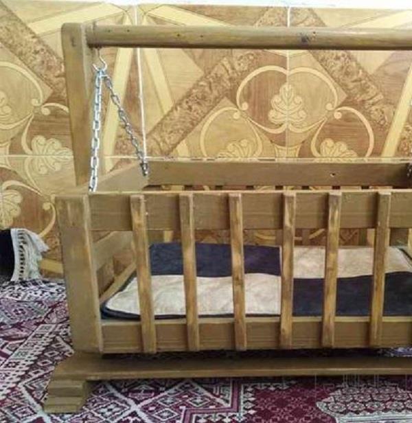 گهواره چوبی با تشک مخصوص وروتشکی داخلش پشم شیشه هست گرم وراحت،بچم توش نمیخوابه