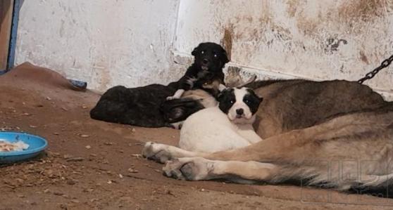 یک جفت توله آلابای سراب نر و ماده سنگین وزن سر و کله دار دست پنجه درشت جنگی و گوسفندی نگهبان گارد