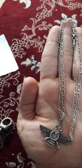 زنجیر و پلاک نقره دستساز فروهر بسیار شیک و زیبا فقط طول زنجیر در حالت بسته 31 سانت هست