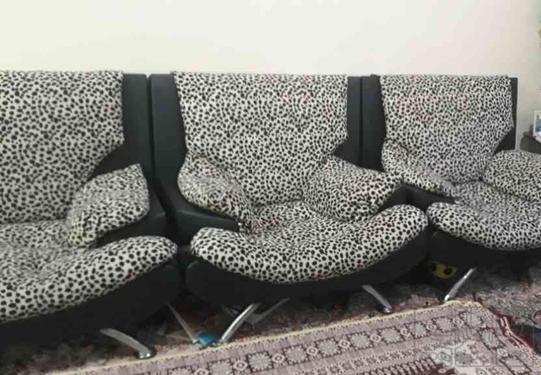 پایه استیل بدون شکستگی و تو رفتگی زیره مبل ها نو شده و کفی و پشتیو دسته ها چسبی است وقابل جدا شدن است برای شستشو