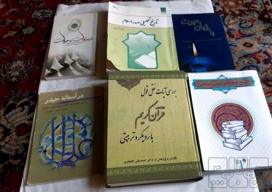 تعدادی کتاب سالم و تمیز دارم در حوزه مسائل دینی و تاریخی 6 جلد کتاب هست بررسی آیات نقل قول قرآن کریم با رویکرد تربیتی در آستانه حیدر تاریخ تحلیلی صدر اسلام تاریخ فرهنگ و تمدن اسلامی با زبان عبرت در میقات تا عرفات