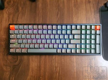 کیبورد مکانیکی keychron k4 سویچ ابی آلمینیوم در حد نو با کارتون و وسایل داخلش هم حالت mac os داره هم Windows