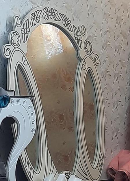 سلام آینه کاملا سالم و خیلی زیبا هست چون جا کم دارم و هی اسباب کشی میکنم مجبورم ردش کنم، طولش بیشتر از یک متره و عرضش حدود یک متر هست دورش ام دی اف هست