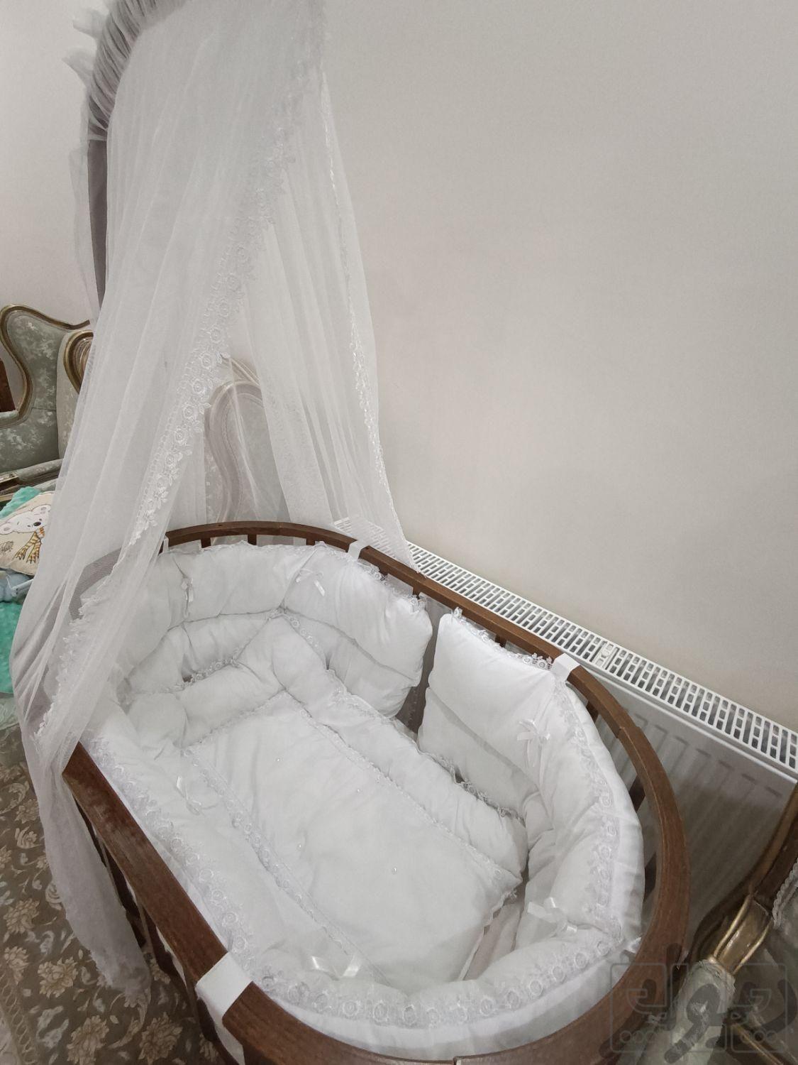 گهواره انگلیسی بسیار زیبا و شیک قابلیت ننو برای خواب راحت دلبند شما تور و تشک و نوار دور تخت کاملا سالم و بدون پارگی گهواره از چوب و کاملا سالم بدون خط و خش دارای چرخ برای جابه جایی راحت خیلی شیکه