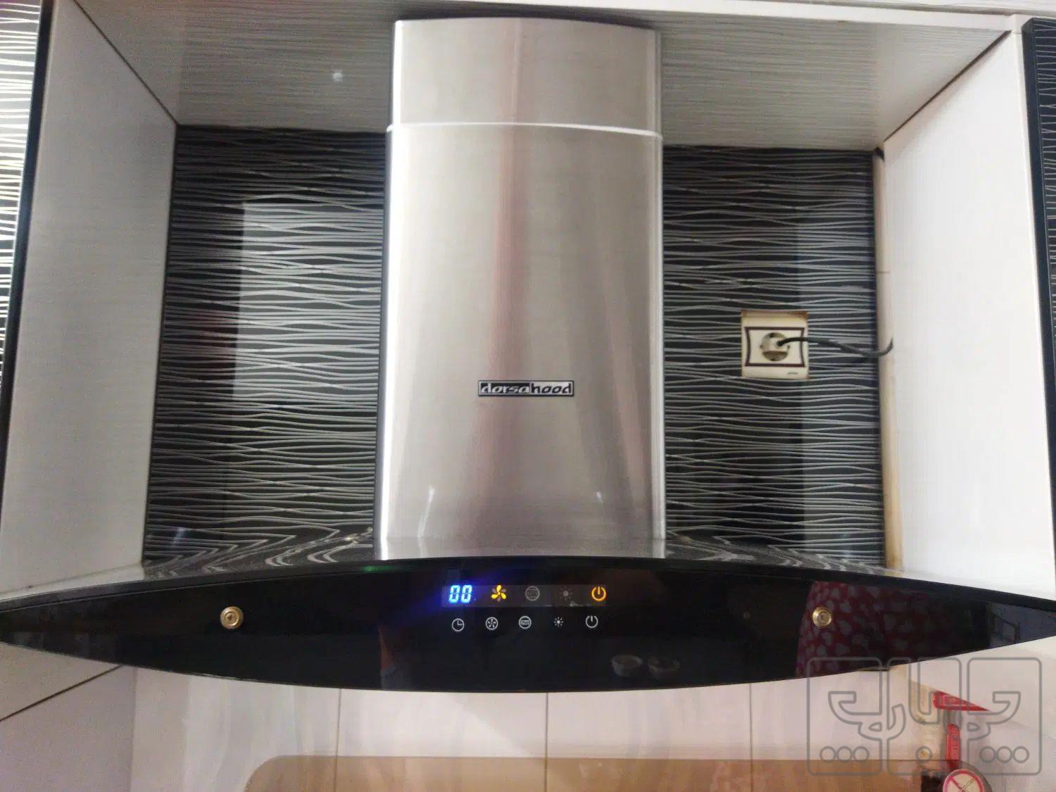 هود آشپزخانه کتابی سالم دو موتوره رنگ سفید هود آشپزخانه شومینه ای اکتیو دو موتوره سالم در حد نو