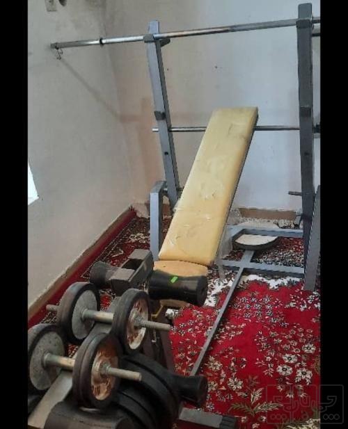 سلام دوستان میز پرس سینه بالاسینه یک جفت دمبل وزنه 20کیلیوی یک جفت وزنه 10کیلیوی یک جفت وزنه دوکیلونیم یک جفت یک عددهالتر پشت پا وجلو پا هم میشه انجامش دادوزیر بقل هم میشه انجام داد