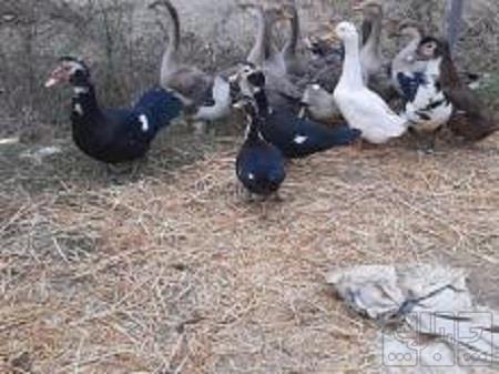 8 غاز محلی و دو رگ اکراینی 4 اردک خارجی(دونر با دو ماده) 2 اردگ محلی مگ مگی همشون توی باغ و بصورت طبیعی بزرگ شدن کاملا سرحال و درشتن