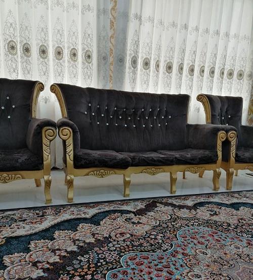 باسلام مبل7نفره شامل یه 3نفره یه 2نفره و دوتا تک نفره جنس چوب و کلاف محکم و قوی چوب درجه یک پارچه ها کمی کهنه شده ولی چوب درجه یک و کلاف درجه یک و سالم