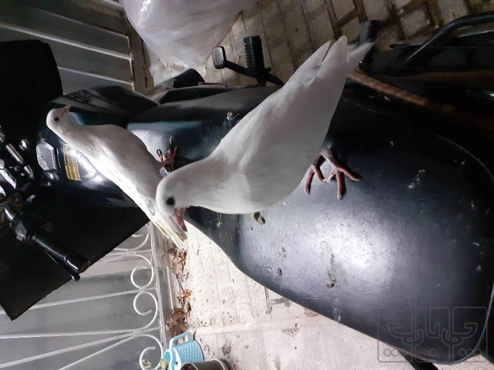 یک جفت گفتر و یک جوجه سفید متوسط به همراه قفس معاوضه با کتونی