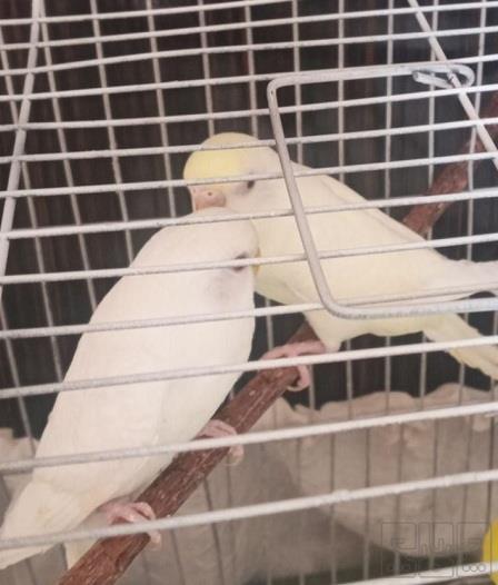 باسلام دوتا مرغ عشق یکی سفید هلندی چشم شرابی ماده و یکی انگلیسی آبی خوشرنگ بازم ماده