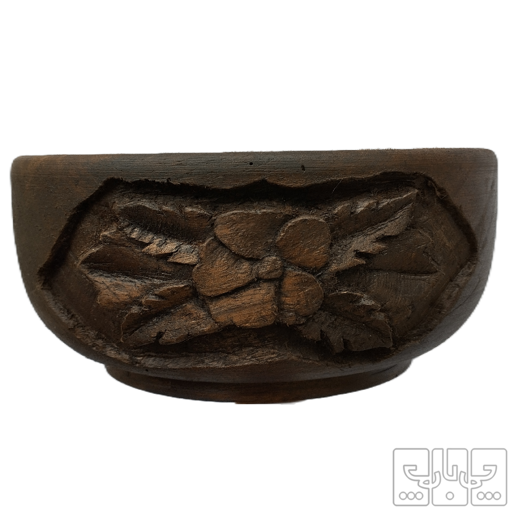کاسه منبت طرح گل از جنس چوب گردو می باشد. طرح گل دو طرفه است و قطر کار،۱۶ سانتی متر می باشد.
