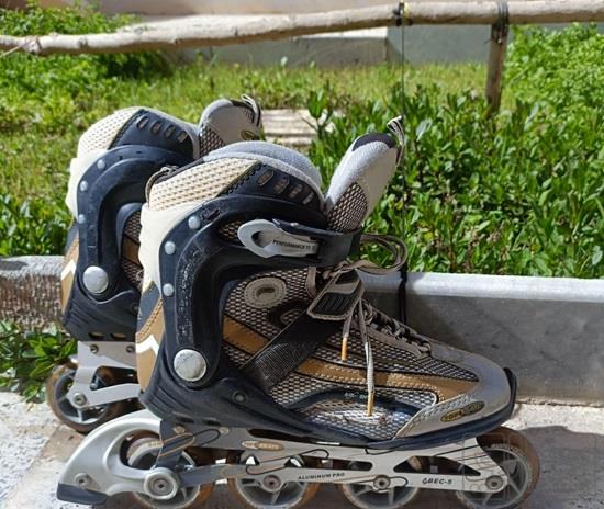 اسکیت وارداتی سرعتی تایر بزرگ. جنس درجه یک و اورجینال هست. کم استفاده شده. بسیار تمیز. یجاش نیاز به تعمیر داشته که انجام شده.و ایرادی نداره. از سایز بچه ابتدایی می خوره تا دبیرستان