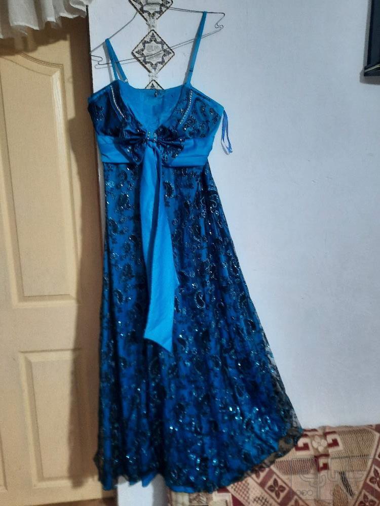 دو دست مجلسی سایز ۴۰ مشکی تن خور عالی آبی هم مال عقد فقط گل سینه جلو افتاده در حد نو فقط یه جشن پوشیده شده هم معاوضه با لباس سایز ۴