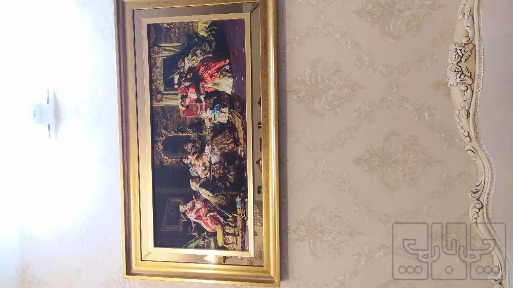 تابلو بسیار زیبا.کاملا نو چند روزه خریداری شده مناسب جهیزیه. دورش چوب و آیینه کار شده قیمت ۶۰۰هزار تومان