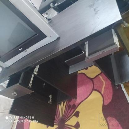 تلویزیون با میز کامپیوتر و صندلی چرخان همه تمیز و نو