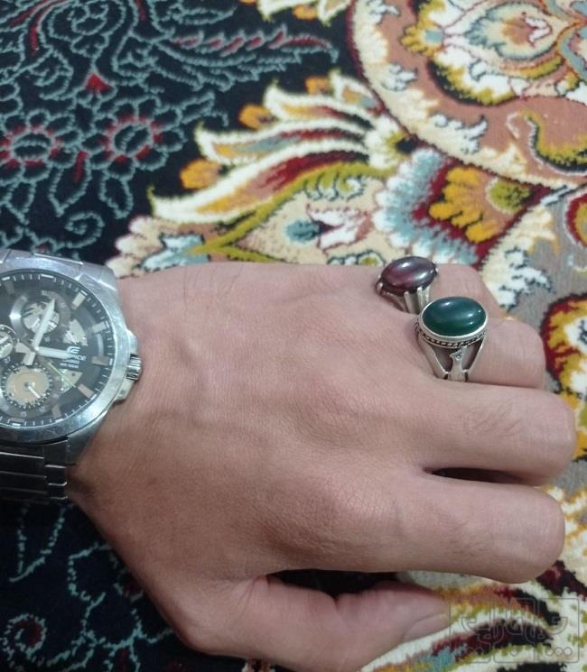 انگشتر لعل با انگشتر عقیق کار استاد اکبر بسیار زیبا و چشم نواز بانقره خوش تبخ عیار بالاپنبه ای