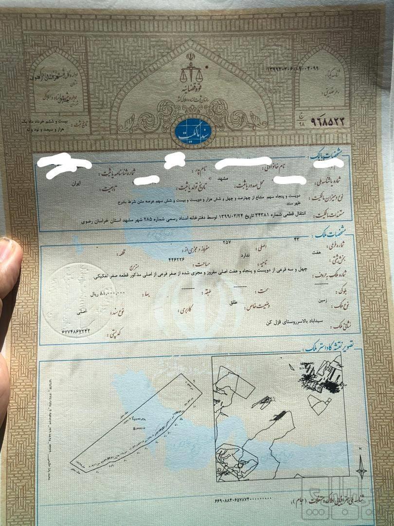 یک هکتار زمین زراعی مشاع به ارزش ۱۶۰میلیون تومن فروش ویژه با تخفیف ۱۲۰م تومن سند تک برگ انتقال قطعی هماهنگی ۰۹۱۵۰۵۰۶۵۵۲ الهی