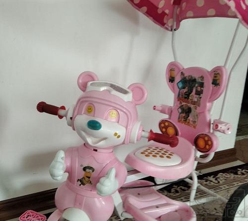 سه چرخه دخترانه موزیکال درحدنو .خیلی کم استفاده شده . دارای اهرم هدایت والدین.سایبان